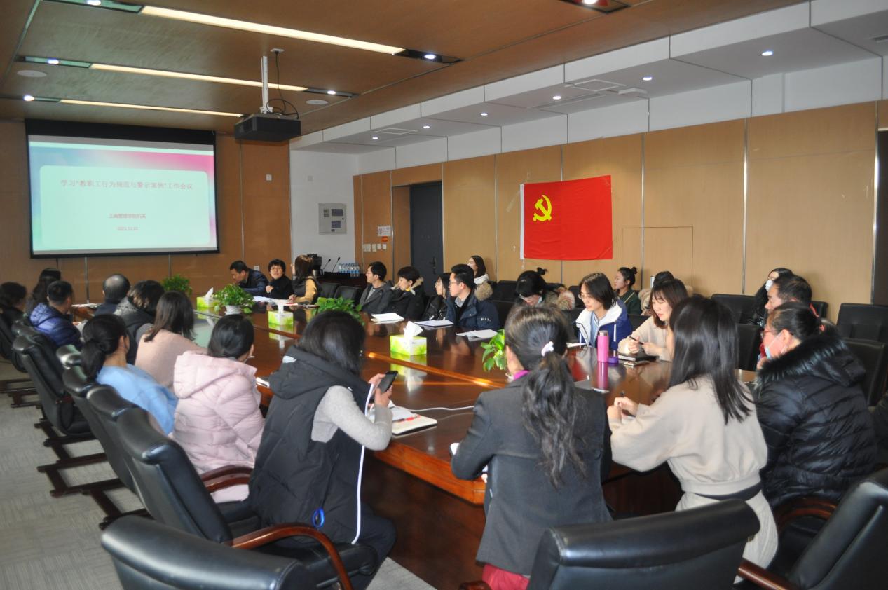 按照学校纪委的相关要求,2021年12月2日下午,新葡的京集团35222vip机关支部在文管学馆B306组织机关全体党员群众学习了“教职工行为规范与警示案例”。