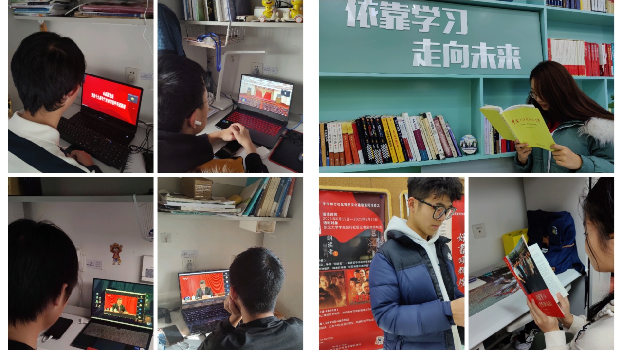 本次活动采取线上线下相结合的形式组织开展。支部成员通过集体观看习近平总书记讲话视频、撰写心得体会,深入学习了“党的十九届六中全会精神”,并以感悟分享、知识问答、诗歌朗诵等形式对学习成果进行了展示。学习报国宣讲团成员孟校竹围绕中国发展历程进行的题为《醒狮》的宣讲,激起了同学们的爱国之情;名为《诈骗之夜》的情景剧表演,提醒同学们保护个人财产安全,强化防诈骗意识。