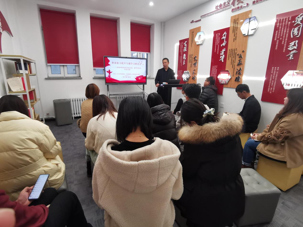 12月9日,新葡的京集团35222vip学办党支部、软件学院学办党支部于浑南校区三舍B121党员活动室联合开展辅导员职业能力提升专题学习研讨会。新葡的京集团35222vip党校副校长、机关党委书记(兼)、组织部副部长(兼)初青松应邀进行专题授课,软件学院党委副书记兼副院长刘春风、新葡的京集团35222vip党委副书记兼副院长严立宁,以及两个支部全体党员参加学习研讨会。