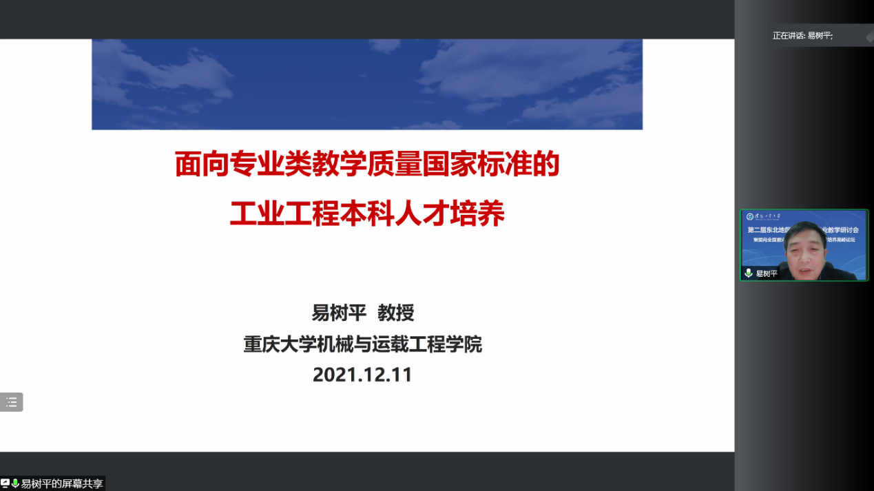 易树平教授做了题为“面向专业类教学质量国家标准的工业工程本科人才培养”的主题报告,介绍了工业工程类专业教学质量国家标准具体内容,重点指出当前部分高校在课程体系建设中存在的问题并提出自己的建议,为后续教学体系建设提供了新思路,并从自身教学经验出发分享了目标导向下的教学设计案例。