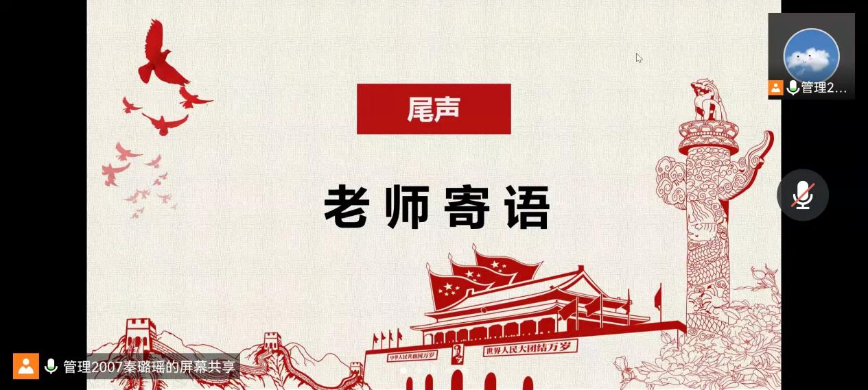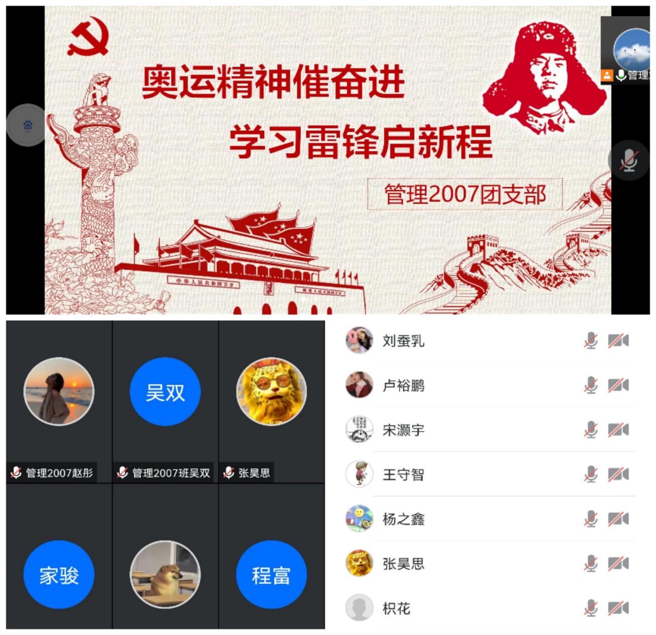 3月23日16:00,管理2007班于线上成功开展了“奥运精神催奋进•学习雷锋启新程”主题团日活动,班导师程富、辅导员王守智应邀出席。
