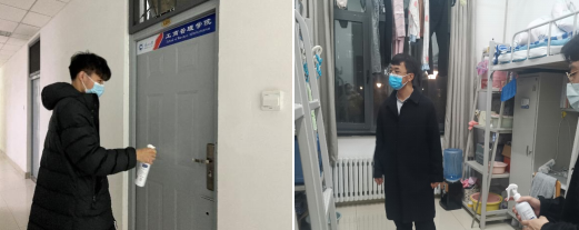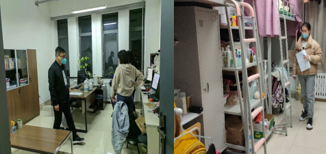 本次寝室安全卫生检查范围包含本、硕、博各年级学生寝室,走访过程中,严立宁与同学们就封闭管理期间的校园生活和线上学习状态深入交流,并对树立积极向上的寝室文化提出了建议。辅导员们强调了校园封闭管理期间宿舍卫生环境对同学们身心健康的重要性,对各寝室的卫生建设提出了整改意见。本次走访重点排查了学生宿舍的安全隐患、人走断电以及违章电器的存有和使用情况,并对各寝室进行了消毒工作。