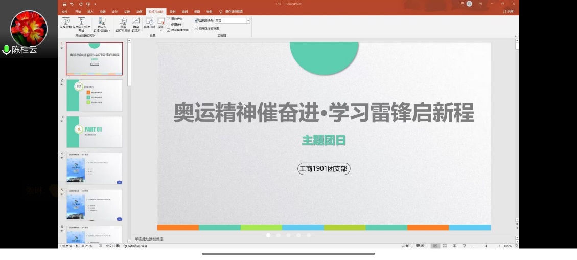 2022年3月28日,工商1901团支部于线上开展了“奥运精神催奋进,学习雷锋启新程”主题团日活动。工商1901团支部全体成员参加本次活动,班导师陈桂云应邀出席。