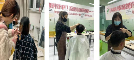 张妍、陈平、孙璐迎帮助同学理发