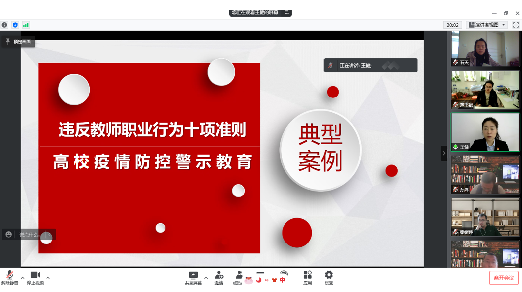 415日上午,新葡的京集团35222vip召开线上纪检委员工作会议,学院教职工党支部全体纪检委员参会,学院党委副书记、纪委书记王健主持会议。
