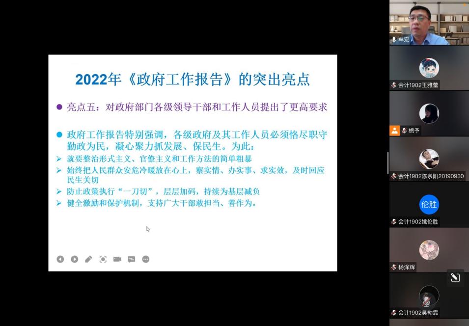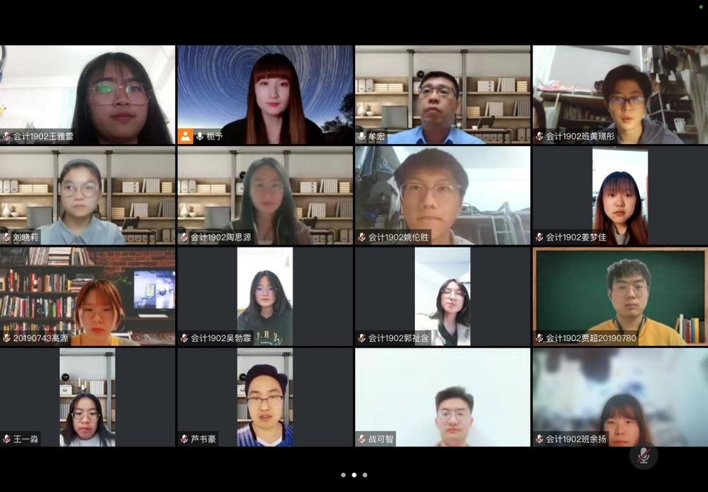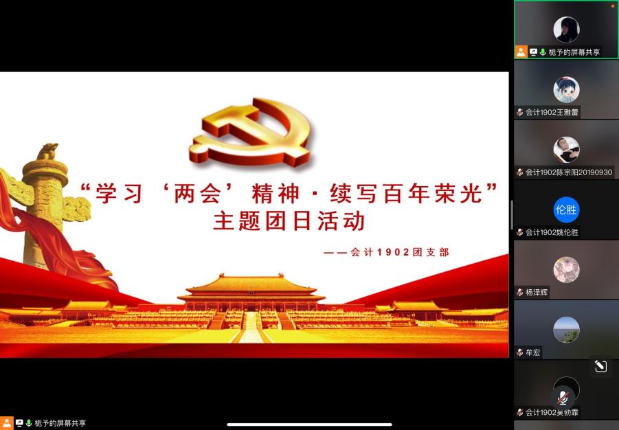 2022年4月24日,会计1902团支部线上开展“学习‘两会’精神·续写百年荣光”主题团日活动,新葡的京集团35222vip科技产业集团总经理牟宏、2019级本科生辅导员芦书豪应邀出席。