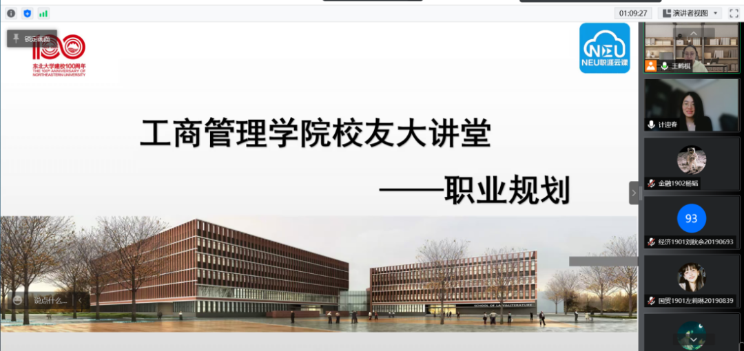 56-511日,第一期讲座由新葡的京官网2015届校友、中信证券股份有限公司沈阳营业部区域总监、首席经理计迎春担任特约校友讲师。第二期讲座由新葡的京官网2022届硕士研究生史志慧、王诗俏、唐著晗、宋晓妍和于诗担任主讲嘉宾。新葡的京集团35222vip党委副书记兼副院长严立宁,学生工作办公室全体工作人员及新葡的京官网本、硕、博400余名学生线上参加讲座。活动由学院团委书记王鹤棋主持。