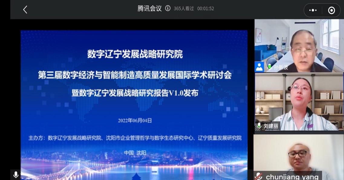 2022年6月4日,由数字辽宁发展战略研究院 、沈阳市企业管理哲学与数字生态研究中心和辽宁质量发展研究院共同承办的“第三届数字经济与智能制造高质量发展国际学术研讨会暨数字辽宁发展战略研究报告V1.0发布”顺利举行。来自国内外数字经济和智能制造领域的专家及学者及企业高管,全国部分高校相关专业的师生共同参与了此次学术研讨会。