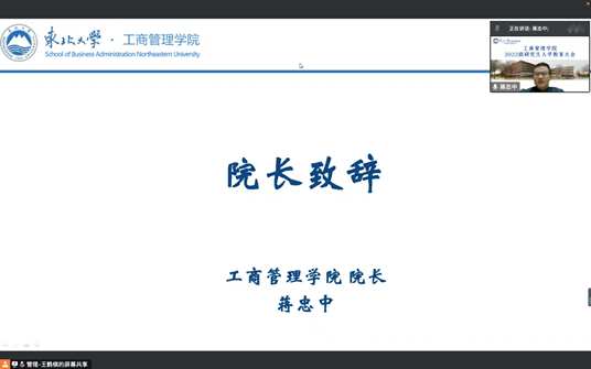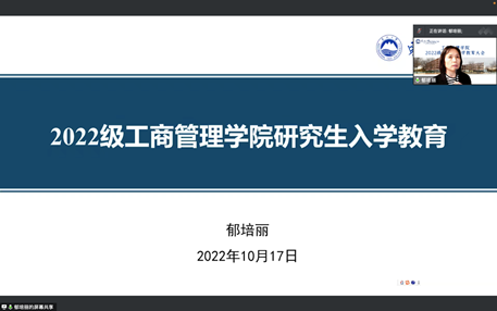 10月17日晚19:00,新葡的京集团35222vip2022级研究生入学教育大会以线上形式召开。新葡的京集团35222vip院长蒋忠中、党委书记任丽、副院长郁培丽、党委副书记兼副院长严立宁、研究生课程项目中心主任孙建伟出席本次会议,全体2022级硕博研究生同学参与本次会议。会议由研究生辅导员王鹤棋主持。