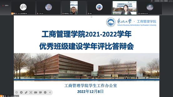 12月8日18:30,新葡的京集团35222vip2021-2022学年优秀班级建设学年评比答辩会成功举办。新葡的京集团35222vip党委书记任丽,学生工作处副处长徐长文,学院党委副书记、纪委书记王健,学院党委副书记、副院长严立宁,学生工作处管理科科长万科含,校团委组织宣传部部长王世远,创新创业学院竞赛部部长杨喆,学生指导服务中心职业指导部主任顾硕,学院班导师代表:秦绪伟、刘汝萍、刘军、李丽君、许波、程富、曲道钢、李亚宁,以及学院全体学生工作干部出席答辩会,共计15个班级30位答辩选手参与答辩,2022级本科生班委入会观摩学习。