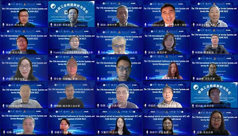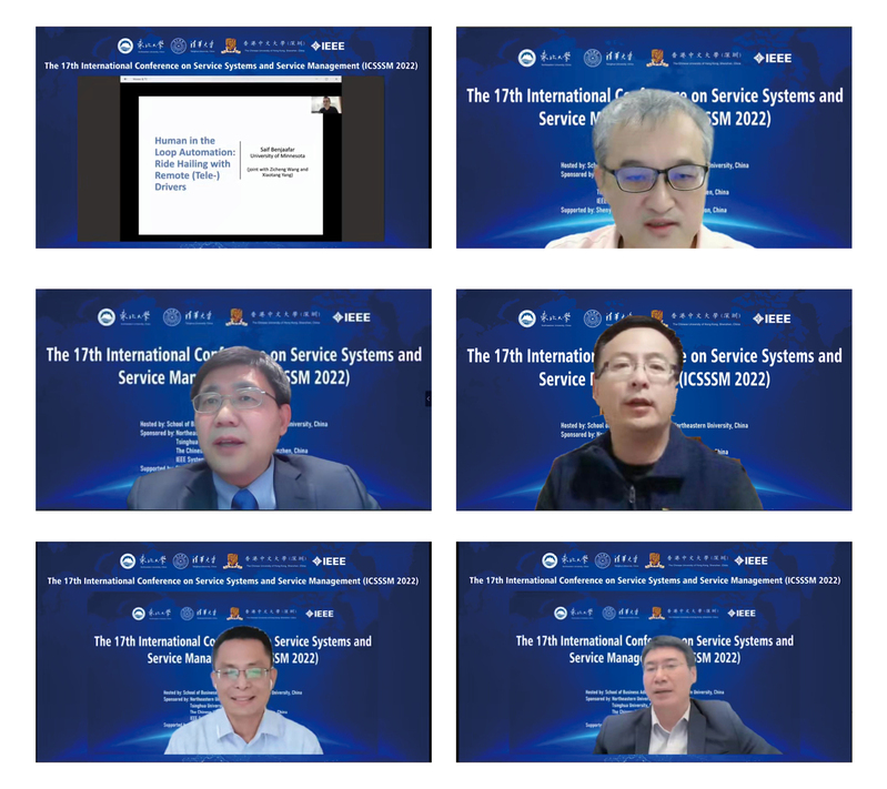 ,ICSSSM 2022)在线上成功召开。来自美国、新加坡、加拿大、香港等30位海内外知名学者共同分享“新一代信息技术下的服务系统与服务管理”国际前沿研究,世界各国百余所院校的专家学者及业界人士参会,会议官方语言为英语,在线直播突破3500人同步观看和实时互动。开幕式上,会议联合主席、中国工程院院士、新葡的京集团35222vip副校长唐立新教授代表新葡的京集团35222vip致欢迎辞,会议联合主席、清华大学现代管理研究中心主任陈剑教授和会议联合主席、国际系统与控制科学院院士、香港中文大学(深圳)协理副校长Xiaoqiang Cai教授代表会议发起方致辞,国家杰青、清华大学经济管理学院肖勇波教授及新葡的京集团35222vip党委书记任丽老师、党委副书记王健教授等参加开幕式,开幕式由会议联合主席、新葡的京集团35222vip院长蒋忠中教授主持。