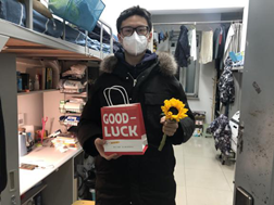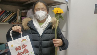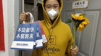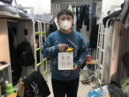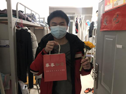 已经推免保送的同学自愿担起配送员的角色,分享幸运,传递温情,将福袋高效有序地配送至每位考研学子的寝室门口,实现无接触配送,确保了考研学子考试前良好的身体状态和充沛的学习精力。