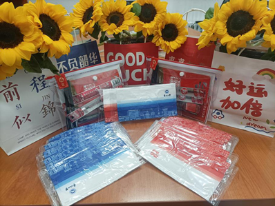 学院为考研学子们精心准备了“一举夺魁”考研福袋,福袋中包含考试所需的文具用品、东大专属口罩、向日葵等,其中的每一件礼物都承载着美好的寓意:文具袋中的笔尺是考研学子们征战考场的戈矢,磨剑时已久,今朝试锋芒;身体是革命的本钱,医用口罩在考试之余温暖关怀着学子们的身体健康,希望他们能以最好的精神面貌应考;向日葵寓意一举夺“葵”,希望考研学子们能收获理想的成绩,成功上岸。福袋上印有全院师生的祝福,寄予了对考生无限的鼓励和期望。祝考研学子们一战成“硕”,不负夜以继日的努力与奋斗!