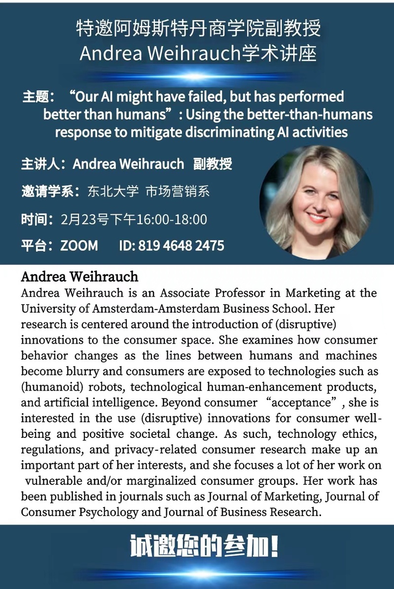 邀请阿姆斯特丹大学Andrea Weihrauch副教授学术报告