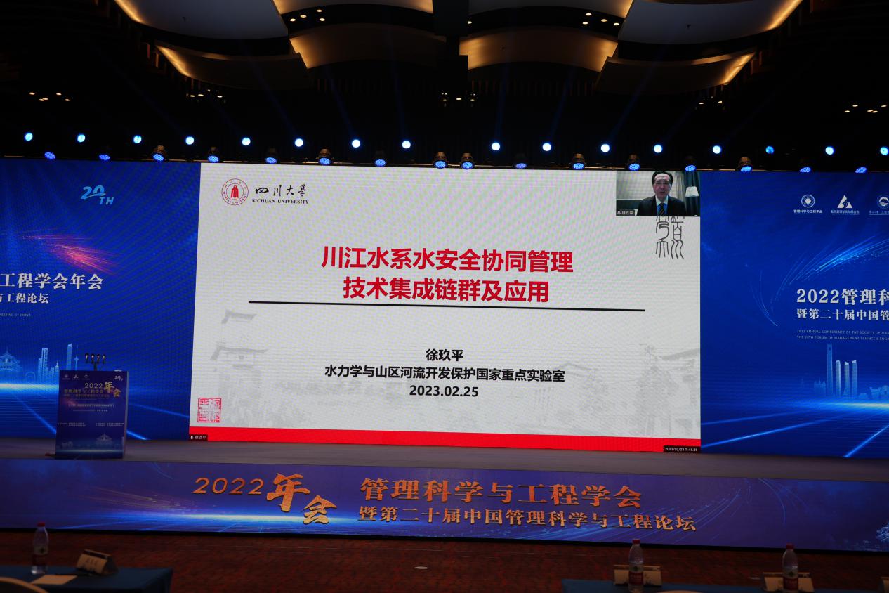 四川大学徐玖平教授作题为“川江水系水安全协同管理技术集成链群及应用”的大会报告。成渝地区双城经济圈高质量发展在国家发展大局中具有独特而重要的战略地位,徐玖平教授针对川江水系复杂多变的水安全问题,分析了水系状况、工程概况和污染概况,提出了水资源优化配置、洪水预报与流域防洪、水环境监测与评估科学问题。在此基础上,他介绍了水安全协同管理技术集成链群,包括流域水网工程区域化协同开发技术链、水资源利用与优化配置技术链和水环境安全评估技术链等技术链。