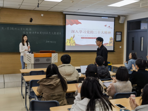 2023年3月9日,金融2001班于一号教学楼B203开展了“深入学习党的二十大精神•学雷锋讲奉献展青春底色”主题团日暨“开学第一次主题班会”活动。学院副院长郁培丽、班导师李亚宁、辅导员王守智应邀出席。