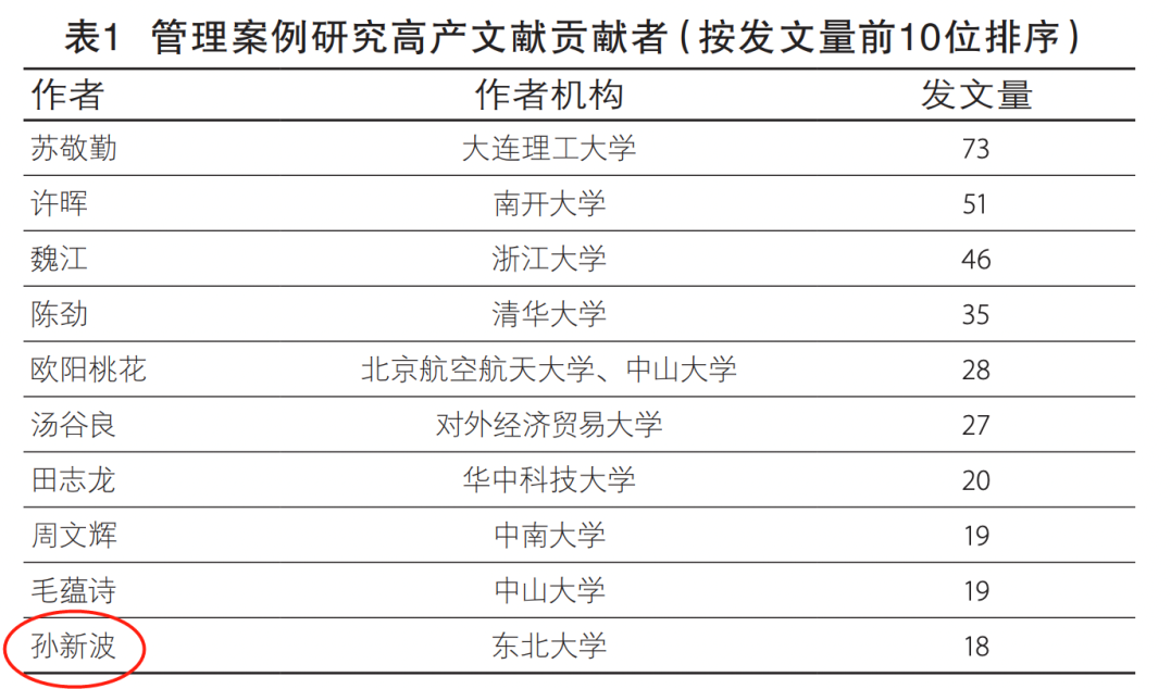 近日,由中文高水平期刊《南开管理评论》发表的《中国管理案例研究40年——系统回顾、问题反思、对策建议与展望》一文对中国管理案例研究文献贡献者进行了排序,孙新波教授被列为中国管理案例研究40年高产学者。