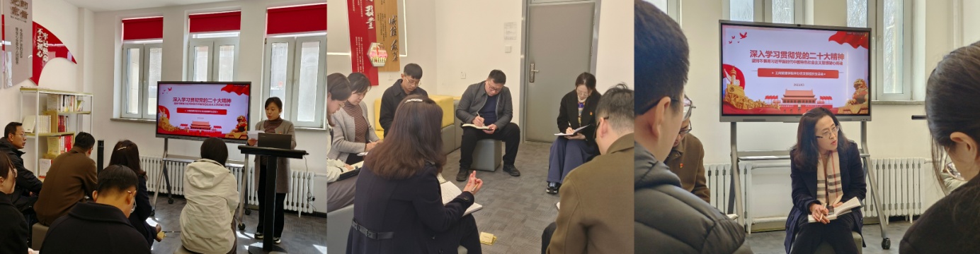 会前,支部全体党员共同学习党的二十大报告和党章,学习习近平总书记在党的二十届一中全会上的重要讲话精神,特别是重点学习了《党的二十大报告学习辅导百问》《二十大党章修正案学习问答》辅导资料。支部书记作2022年支部工作报告,详细汇报巡视巡察及上年度组织生活会查摆问题的整改落实情况,明确支部2023年度建设目标,号召支部党员加强理论学习,切实发挥党支部的战斗堡垒作用和党员的先锋模范作用,打造教育有力、管理有力、监督有力、组织有力、宣传有力、凝聚有力、服务有力的样板党支部,全面助力学生成长成才。