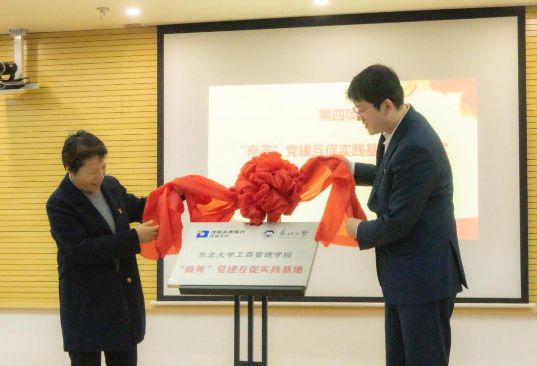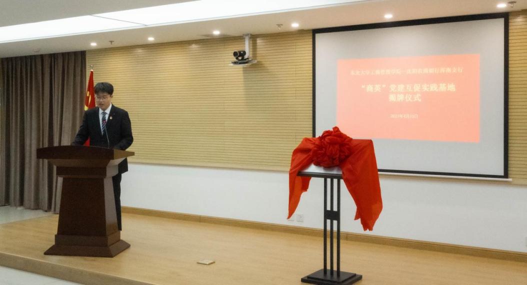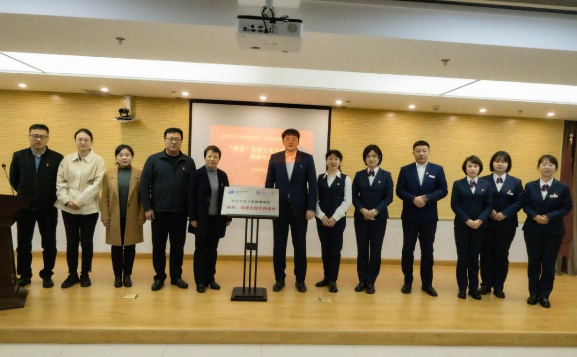 为培育高素质金融技术人才,提升学生的财商素养,4月13日上午9时,新葡的京集团35222vip与沈阳农商银行浑南支行共同举行“商英”党建互促实践基地揭牌仪式。新葡的京集团35222vip党委书记任丽,党委副书记、副院长、学生党总支书记严立宁,学生工作办公室相关老师,沈阳农商银行浑南支行党总支书记、行长张麒麟,党总支委员、副行长宋威,农商行浑南支行相关同志以及工商管理、应用经济学相关专业的部分硕士生党员共计三十余人参与本次揭牌仪式。