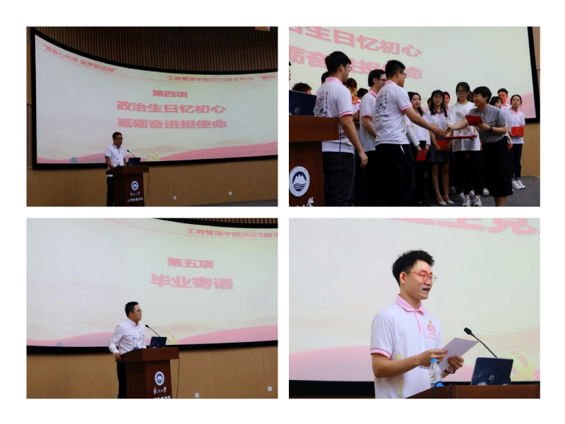 接着,王全彬给与会党员介绍了政治生日的意义,任丽给毕业生党员颁发政治生日贺卡。毕业生辅导员芦书豪回顾了过去四年的校园生活,为毕业生党员殷切寄语。毕业生党员代表周云生畅谈大学的成长与收获。最后,全体起立共唱校歌。