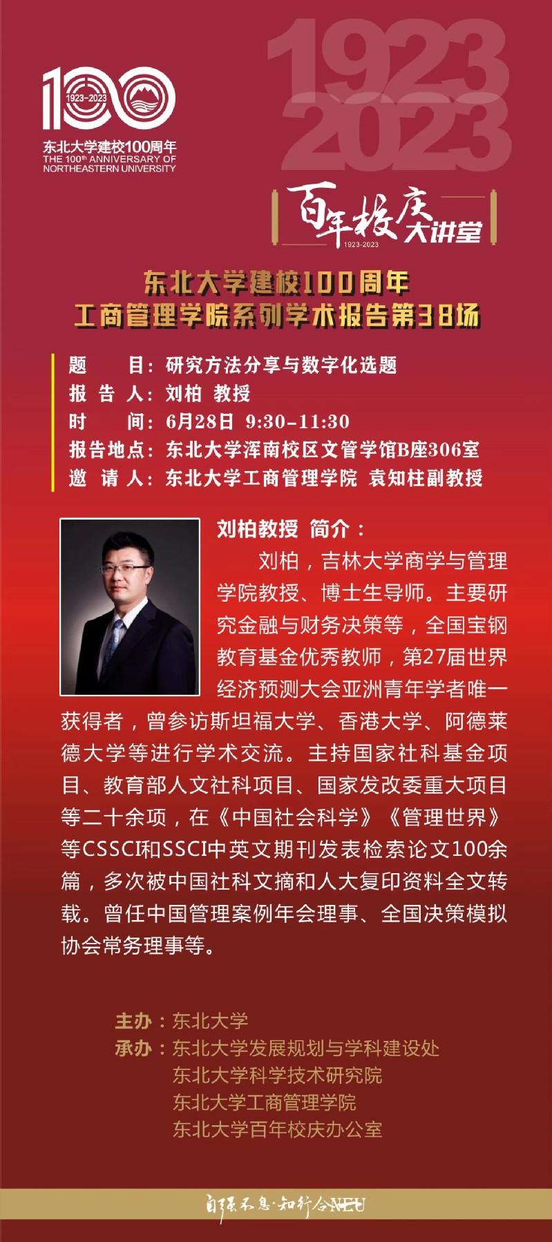 邀请吉林大学商学与管理学院刘柏教授学术报告