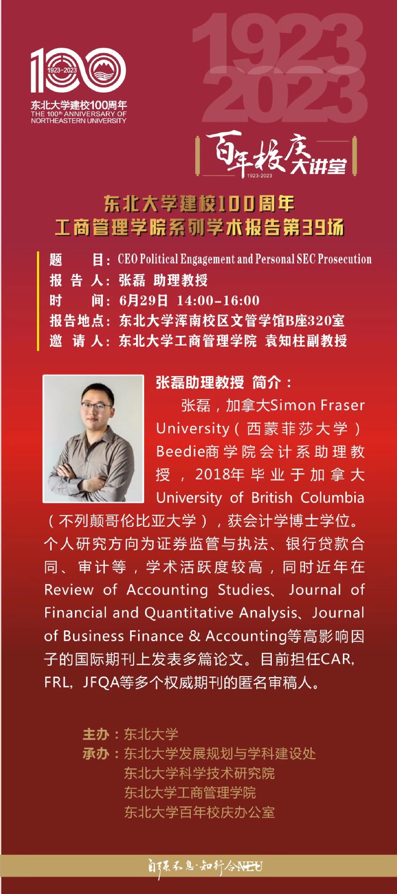 邀请加拿大西蒙菲莎大学张磊助理教授学术报告