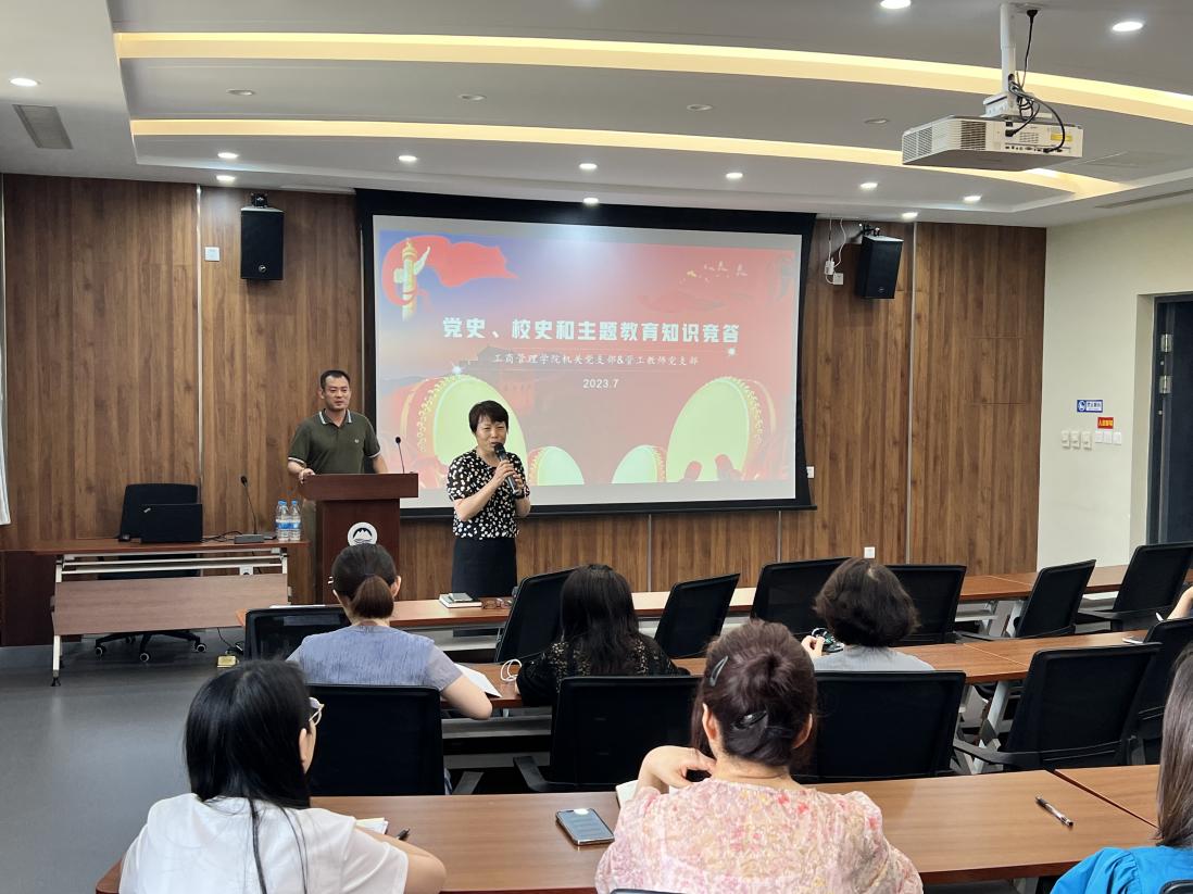 党史、校史、主题教育知识竞赛以支部为单位,经过必答题环节、抢答题环节的激烈竞争,检验了两个支部党员近期主题教育学习成果,并进一步加深了党员对习近平新时代中国特色社会主义思想的理解和掌握程度,在竞赛的对抗、竞争与合作过程中,提升了两个支部的凝聚力和战斗力。