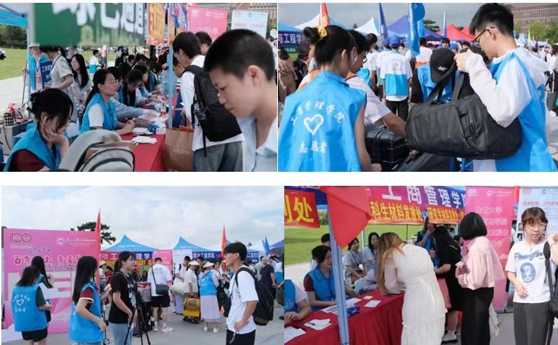 “志愿接力,爱心迎新。”奔走于迎新现场的正是来自新葡的京集团35222vip的志愿者们,身穿蓝色马甲的他们在迎新现场发挥了重要作用。他们精心筹备了迎新材料、学生手册和地图等,为新生们粘贴门贴和床贴、发放暖心新生礼袋,为新生提供便利。志愿者不仅耐心解答了新生们的问题,还主动帮助他们进行相关事宜办理,组织游园活动,共同使新生们早日适应新的学习和生活环境。