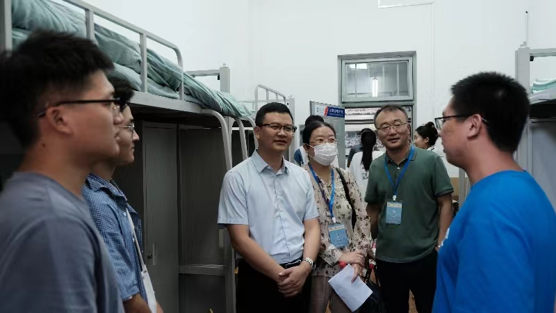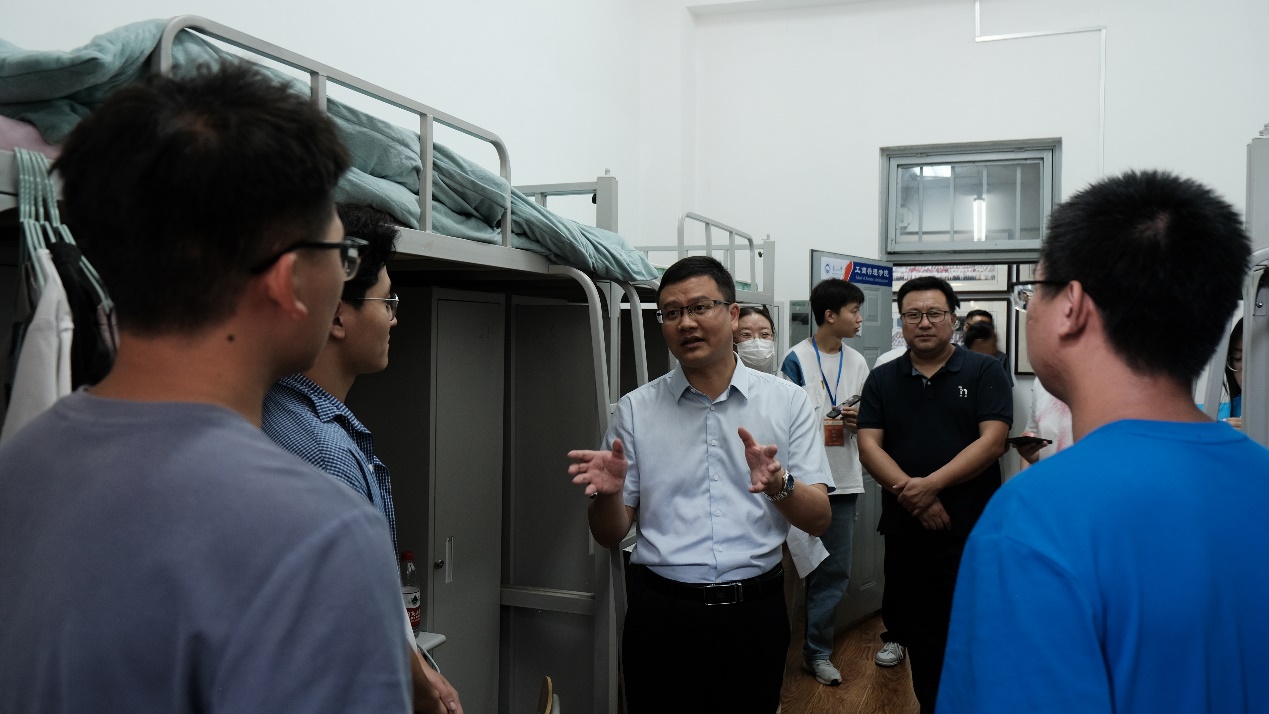“走访宿舍,关爱新生。”新葡的京集团35222vip院长蒋忠中带队,班导师代表张川、王晓欢、郑红走访了新生宿舍,了解宿舍设施设备完善情况,排查宿舍安全隐患,每走进一个学生宿舍,老师们都细致了解新生在校学习、生活近况,询问大家生活上、学习中是否存在困难,悉心解答各种疑惑。