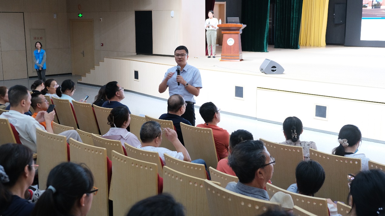 蒋忠中从学院历史沿革、师资队伍、科研成果和学科未来规划等层面讲述了学院概况。孙新波从本科专业设置、教学培养等层面进行介绍。严立宁介绍了学生工作、第二课堂建设、安全教育工作。班导师代表王晓欢为新生送上寄语和祝福。芦书豪介绍23级新生情况。经管2312班刘书翰和23硕应用经济学王路宁分别作为新生代表和优秀在校生代表发言。在家长提问环节,各位与会领导老师就家长关心的大类培养、就业和大学期间的心理、生活、安全等各方面问题进行了详细解答。