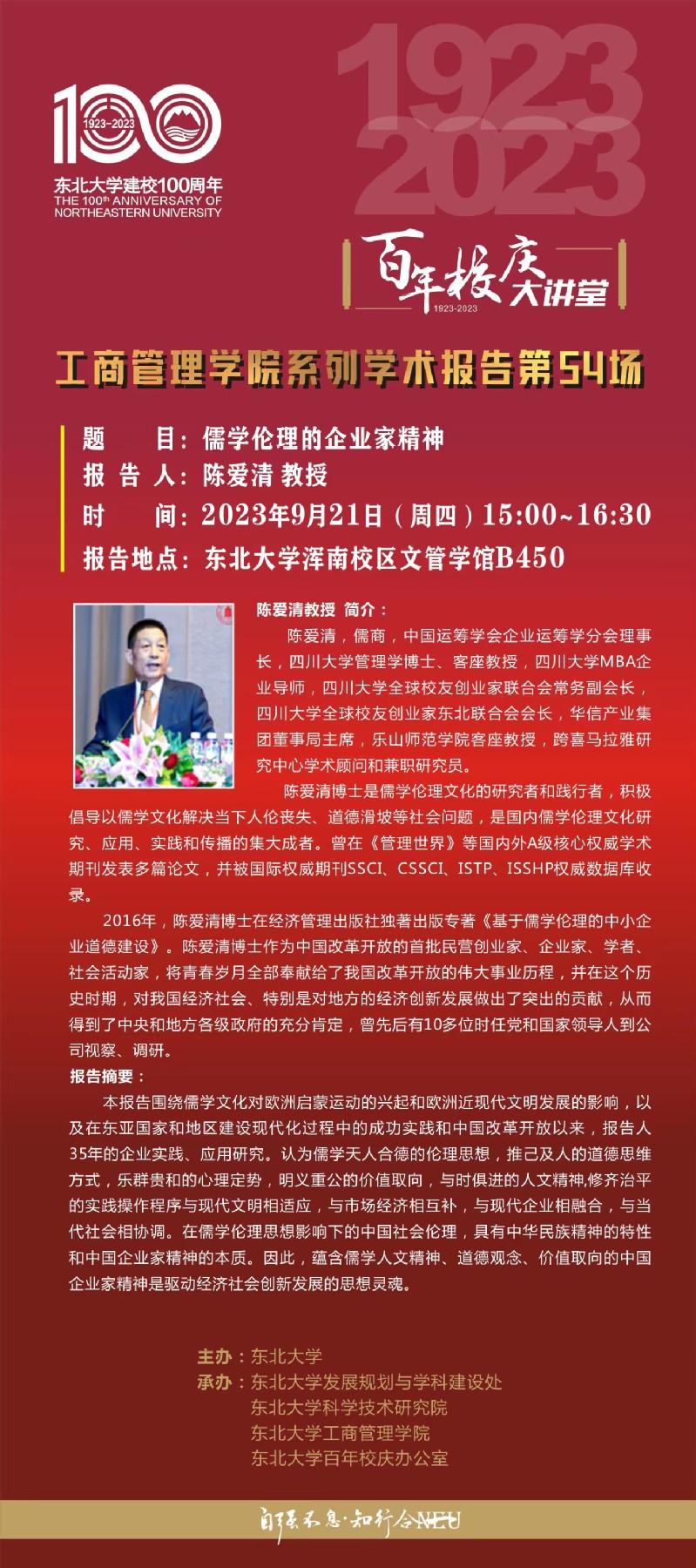 邀请四川大学陈爱清教授学术报告