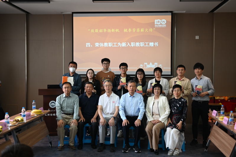 荣休教职工为新入职教职工赠予书籍《给青年的十二封信》,书上有院长、书记、退休老师的签名和寄语,寓意着新老管理人之间的薪火相传、继往开来的奋斗接续,以及师者初心和育人使命的精神传承。