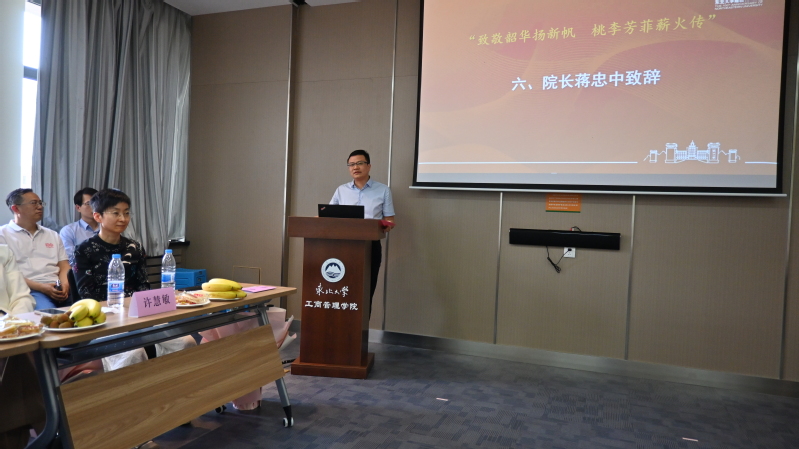 院长蒋忠中发表讲话,向荣休教师致以真挚感谢和祝福并对新入职教职工表示热烈欢迎。他表示,荣休教师精研学术、勤育栋梁,躬耕奉献、无私付出,是学院事业发展的亲历者、见证者,更是建设者、贡献者。希望荣休教师能够“退休不褪色、离岗不离心”,一如既往地关心支持学院发展,为学院的改革和发展建言献策。新入职教职工要从以今天的荣休教师为代表的老一辈管理人手中传好接力棒、挑起新担子,为学院早日建设成为“国内一流、国际知名”高水平研究型学院贡献青春力量。