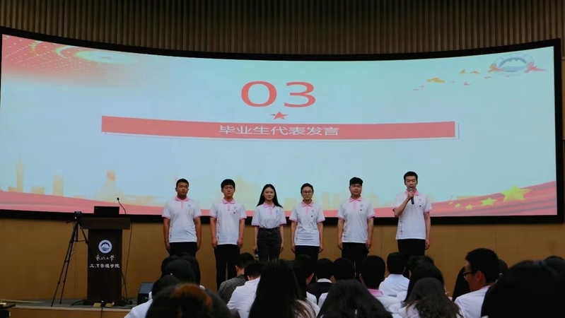 随后,赵乃萱、冯铄、陈禹州、李众、李滟聪、杨凯、排日代姆作为2024届毕业生党员代表依次上台发言。回忆往昔,他们深情回顾四年青春奋斗之旅,各自分享了在党的培养下他们如何坚定理想信念、锤炼党性修养、提升能力素质的成长故事。展望前路,他们立志继承和发扬党的优良传统和作风,勇担时代重任,为实现中华民族伟大复兴的中国梦贡献自己的力量。伴随着“时光印记”的重现,同学们更加坚定了自身的理想信念,更加明确了自己的人生方向。